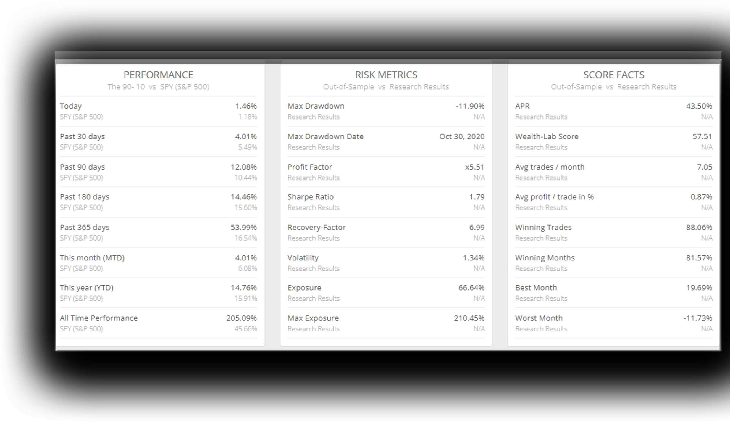 Each trade in The 90- 10 has a statistical probability based on its history that the trade will end in profit 90% of the time.